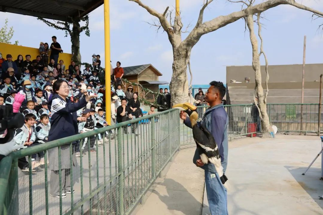 同學(xué)們與鳥兒進(jìn)行親密互動,在工作人員的指導(dǎo)下給鳥兒們喂食,引得孩子們陣陣歡笑,人與自然和諧共生的畫面充分彰顯。