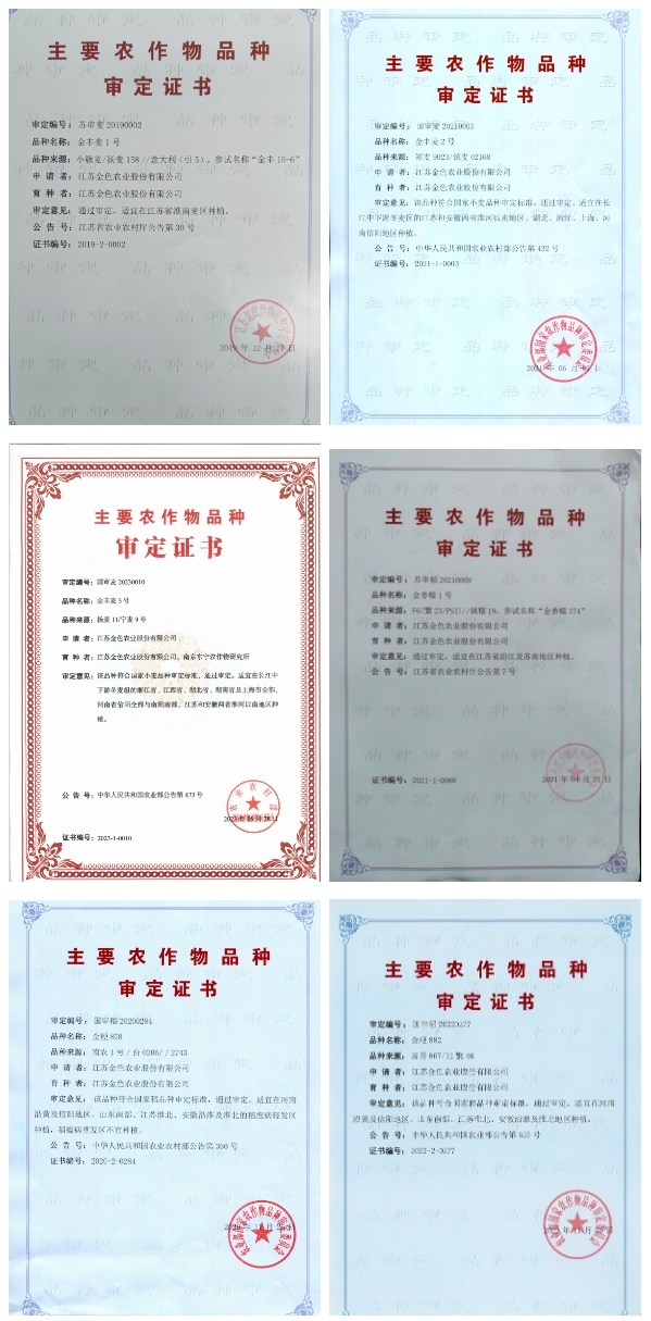 育種是一項(xiàng)復(fù)雜繁瑣的系統(tǒng)性工作,它不僅考驗(yàn)著育種工作者的知識(shí)和經(jīng)驗(yàn),更極大地考驗(yàn)著育種工作者的耐心。作為中國共產(chǎn)黨員,錢進(jìn)同志研究生畢業(yè)以后毅然來到農(nóng)業(yè)科研一線,工作中他不斷學(xué)習(xí)先進(jìn)的遺傳育種知識(shí),更在不斷提升自己的科研水平和能力,在他和同事們的工作同努力下,2019年江蘇金色農(nóng)業(yè)股份有限公司自主培育的小麥品種金豐麥1號(hào)通過江蘇省審定;2020年水稻新品種金粳858通過國家審定;2021年自主培育小麥新品種金豐麥2號(hào)通過國家審定、水稻新品種金香糯1號(hào)通過江蘇省審定;2022年水稻新品種金粳882通過國家審定;2023年小麥新品種金豐麥3號(hào)通過國家審定。