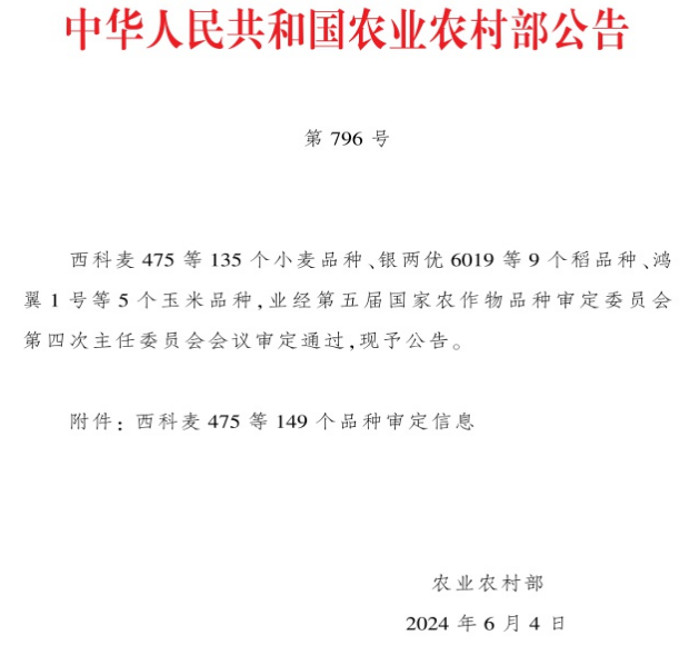近日,農(nóng)業(yè)農(nóng)村部發(fā)布第五屆國家農(nóng)作物品種審定委員會第四次主任委員會會議審定通過的作物品種,農(nóng)業(yè)科技集團(tuán)所屬金色農(nóng)業(yè)選育的小麥新品種“金豐麥6號”通過國家審定。