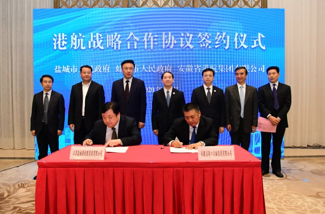 10月28日下午,鹽城市人民政府和安徽省港航集團、江蘇鹽城港控股集團和安徽省港口運營集團在蚌埠市分別簽訂戰(zhàn)略合作協(xié)議。蚌埠市委書記汪瑩純、鹽城市人民政府市長曹路寶、安徽省港航集團董事長丁慶領(lǐng)等出席并致辭。