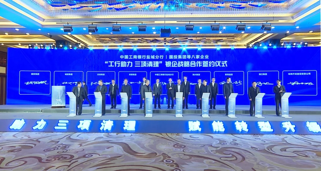 12月17日下午,鹽城市人民政府與中國(guó)工商銀行江蘇省分行“工行助力三項(xiàng)清理”政銀戰(zhàn)略合作簽約活動(dòng)隆重舉行。集團(tuán)黨委書(shū)記、董事長(zhǎng)、總經(jīng)理周正雄參加活動(dòng)并與工行鹽城分行簽訂了《戰(zhàn)略合作協(xié)議》。