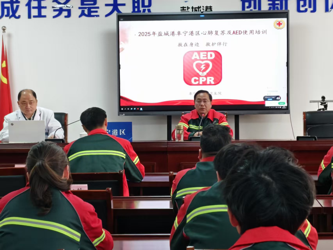 應(yīng)急能力建設(shè)是安全工作的關(guān)鍵一環(huán)。安全演練中,阜寧港區(qū)聯(lián)合施莊衛(wèi)生院,圍繞心肺復(fù)蘇(CPR)及自動(dòng)體外除顫器(AED)使用展開系統(tǒng)培訓(xùn)。參訓(xùn)人員通過理論學(xué)習(xí)掌握急救要點(diǎn),并在醫(yī)護(hù)人員指導(dǎo)下分組實(shí)操,從環(huán)境安全判斷到胸外按壓、人工呼吸及AED聯(lián)動(dòng)使用,全流程嚴(yán)格規(guī)范操作。此次演練不僅提升了全員急救技能,更檢驗(yàn)了應(yīng)急預(yù)案的實(shí)操性。港區(qū)計(jì)劃于6月底前先后開展防汛、防臺(tái)、防雷專項(xiàng)演練,進(jìn)一步筑牢突發(fā)事件應(yīng)對(duì)屏障。