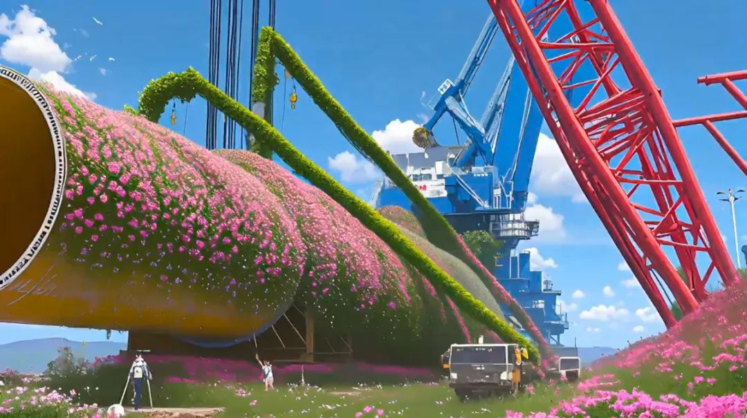 花朵順著起重機(jī)的臂膀攀爬