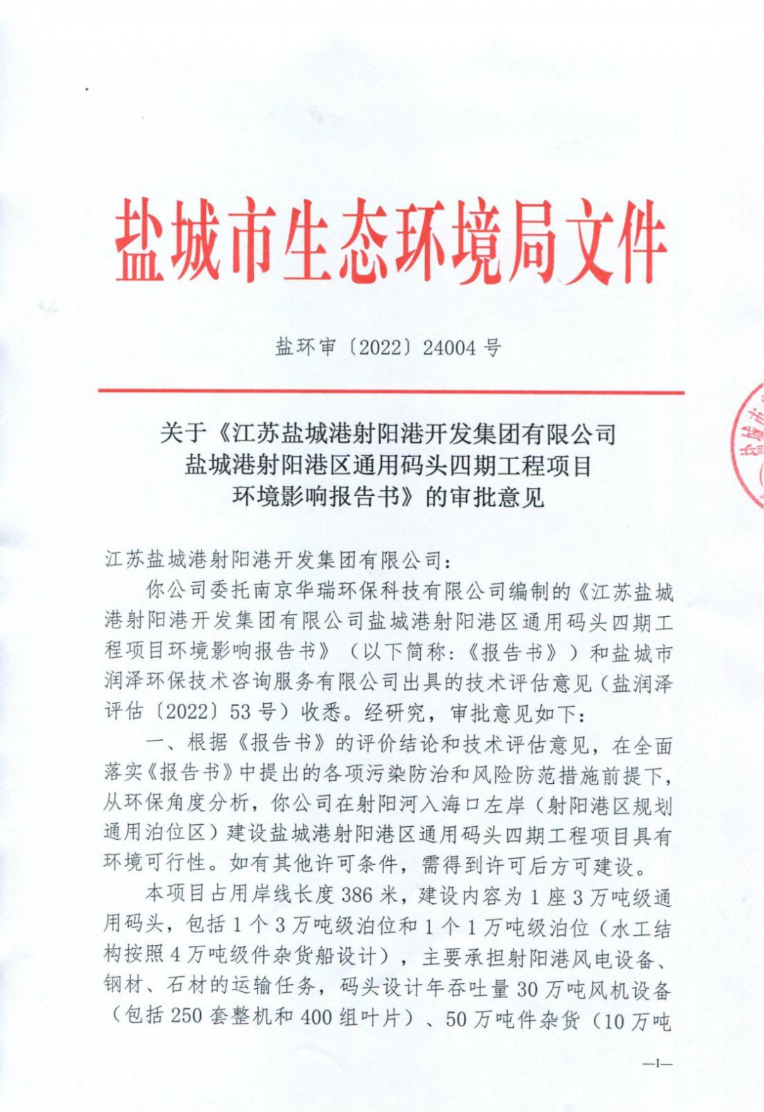 重點(diǎn)項(xiàng)目手續(xù)跑辦取得新突破|鹽城港射陽(yáng)港區(qū)通用碼頭四期工程環(huán)評(píng)正式獲批