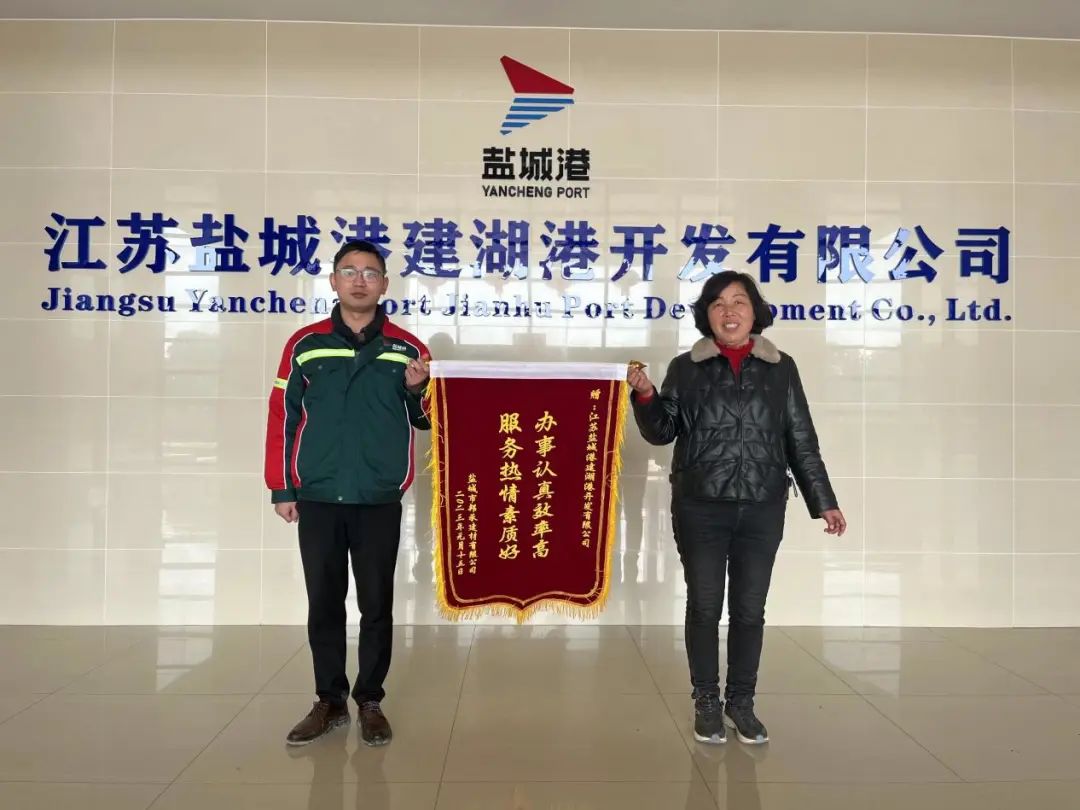 近日,鹽城港建湖港區(qū)收到來自合作客戶贈予的一面印有“辦事認(rèn)真效率高,服務(wù)熱情素質(zhì)好”的錦旗,對建湖港區(qū)在業(yè)務(wù)開展過程中所提供的優(yōu)質(zhì)服務(wù)表示感謝。