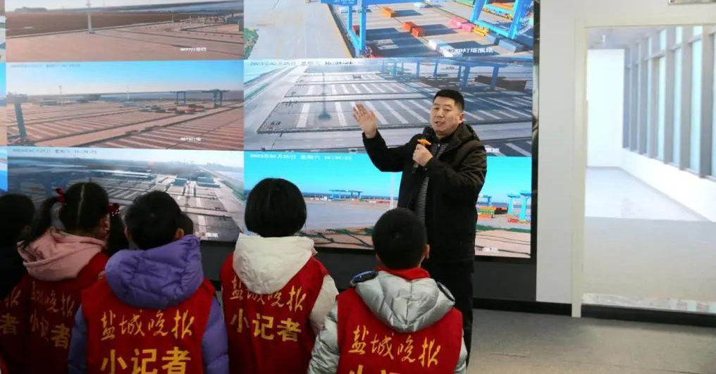 (學(xué)生們走進(jìn)江蘇沿海地區(qū)首個(gè)自動(dòng)化集裝箱堆場(chǎng))