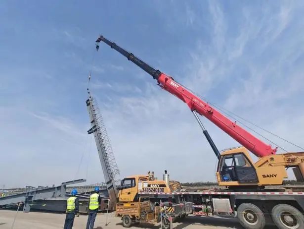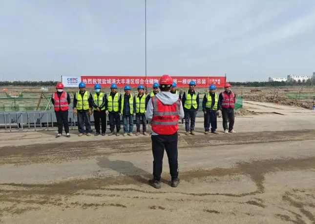 精工匠筑 開啟建設(shè)新篇章丨鹽城港大豐港綜合倉(cāng)儲(chǔ)物流鋼架首吊順利就位