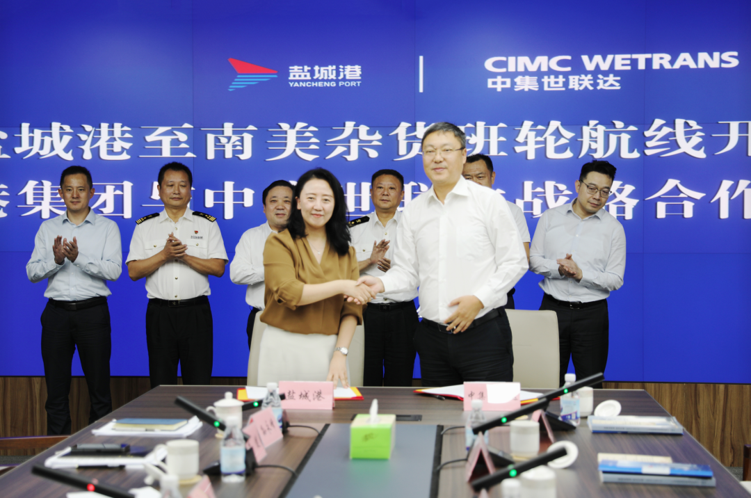 9月17日,鹽城港至南美雜貨班輪航線開航暨鹽城港集團與中集世聯(lián)達(dá)戰(zhàn)略合作簽約儀式成功舉行。集團黨委書記、董事長、總經(jīng)理周正雄主持活動。中集世聯(lián)達(dá)長江物流副總經(jīng)理劉羽,鹽城海關(guān)二級高級主辦李健,鹽城海關(guān)駐大豐港海關(guān)辦事處主任崔克勁,集團總經(jīng)理助理孫永峰等參加并鑒簽。鹽城港港口公司董事長袁欣代表集團與中集世聯(lián)達(dá)長江物流公司簽訂合作協(xié)議。