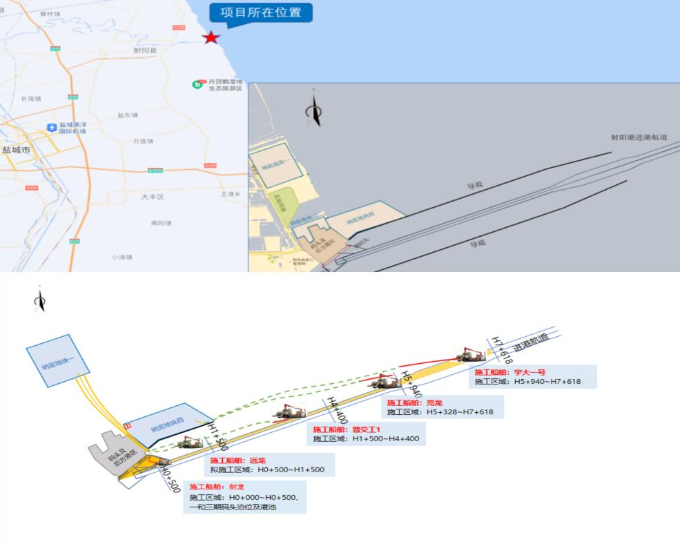 近日,鹽城港射陽(yáng)港區(qū)3.5萬(wàn)噸航道維護(hù)疏浚工程順利完成跨航道沉管布設(shè)。