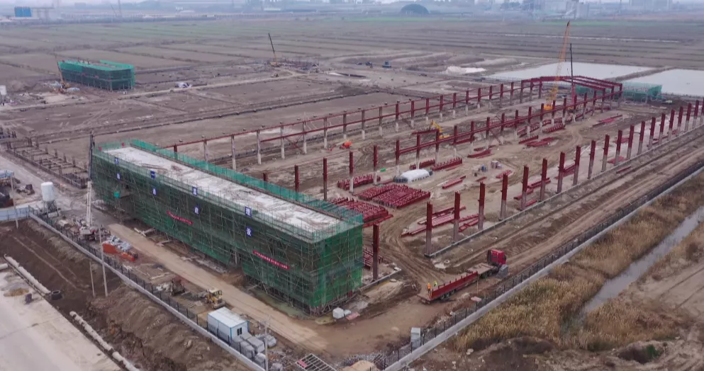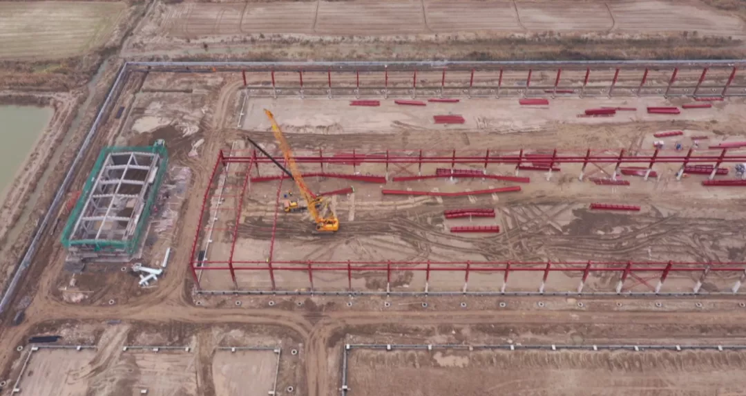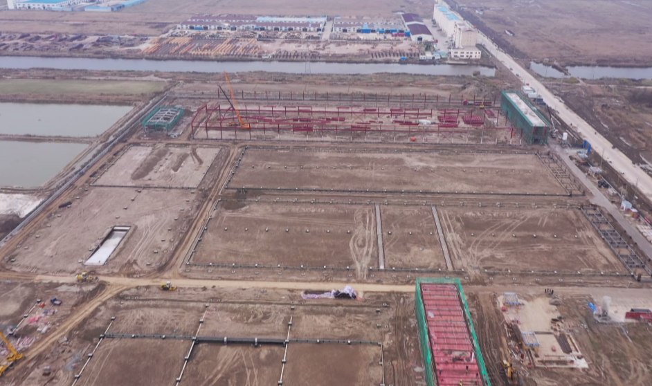 走進(jìn)大豐港區(qū)昆侖綠建項目建設(shè)現(xiàn)場,工人們正在緊張作業(yè),鋼管架密如織網(wǎng)、轟鳴聲震耳欲聾、運輸車來回穿梭,現(xiàn)代化的廠房即將拔地而起。