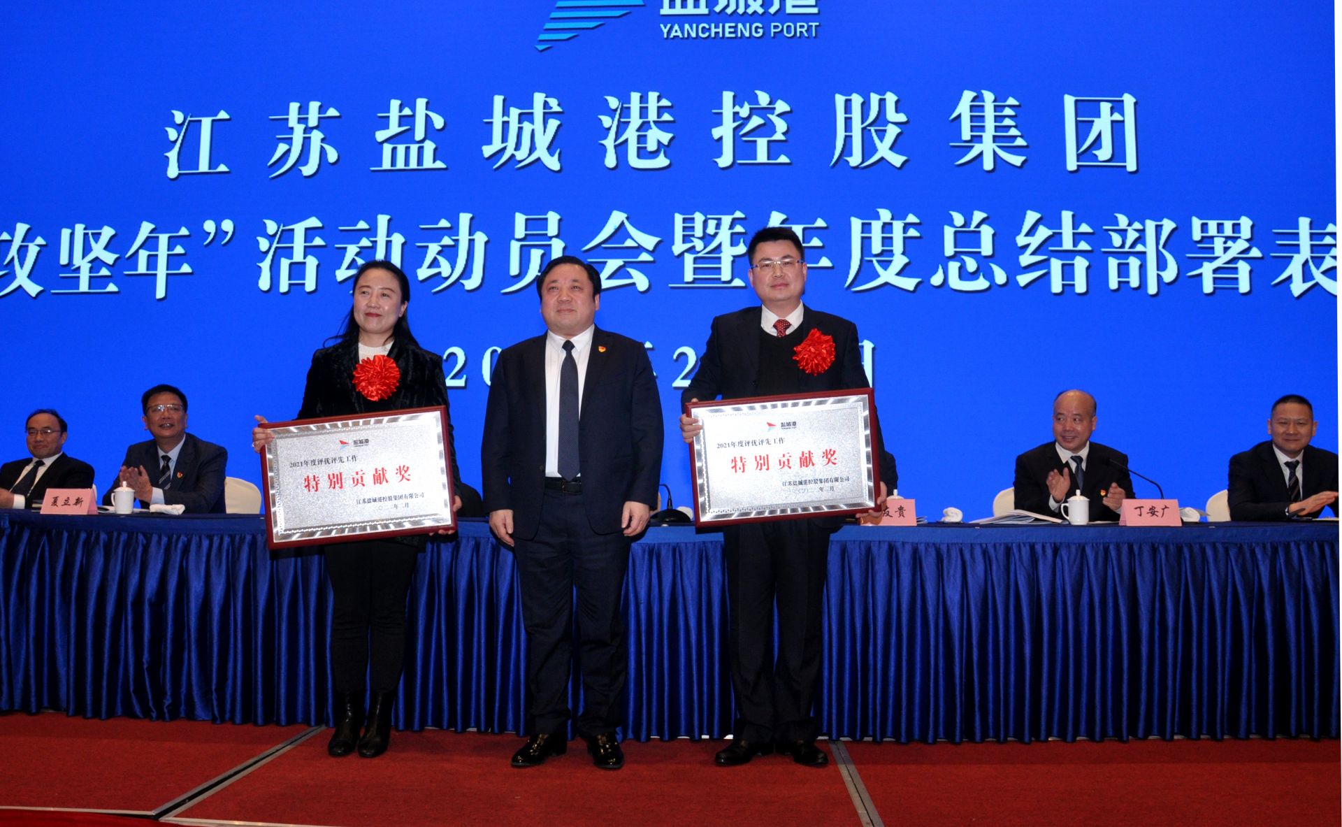 會議為2021年度集團受表彰的先進集體、先進個人、卓越工匠以及營銷標兵代表進行了頒獎,大豐海港控股集團、濱海港開發(fā)集團、國際陸港集團、項目建設管理公司、集團企業(yè)管理部分別圍繞主題作了表態(tài)發(fā)言。