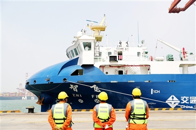 姜海鷹表示,“智飛”號是目前全球最大、中國首艘智能航行集裝箱船,4月下旬,“智飛”號在山東港口青島港正式交付,投入商業(yè)運營。數(shù)日來,這條最多可裝載316個標準箱的集裝箱船,每日往返于青島港、日照港之間,成為繁忙海運大軍中的一員。