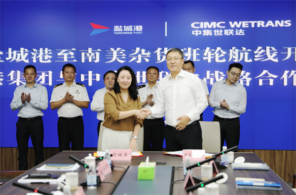 9月17日,鹽城港至南美雜貨班輪航線開航暨鹽城港集團(tuán)與中集世聯(lián)達(dá)戰(zhàn)略合作簽約儀式成功舉行。集團(tuán)黨委書記、董事長、總經(jīng)理周正雄主持活動(dòng)。中集世聯(lián)達(dá)長江物流副總經(jīng)理劉羽,鹽城海關(guān)二級(jí)高級(jí)主辦李健,鹽城海關(guān)駐大豐港海關(guān)辦事處主任崔克勁,集團(tuán)總經(jīng)理助理孫永峰等參加并鑒簽。鹽城港港口公司董事長袁欣代表集團(tuán)與中集世聯(lián)達(dá)長江物流公司簽訂合作協(xié)議。