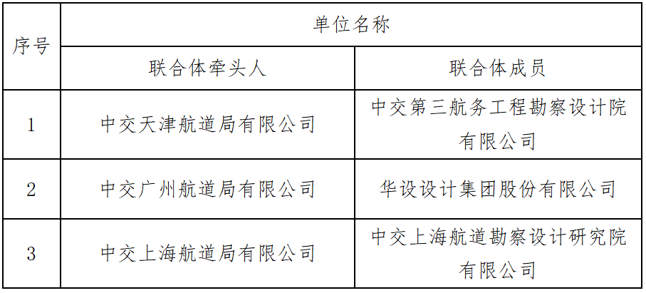 根據(jù)《濱海港區(qū)挖入式港池清理改造工程設(shè)計施工總承包BHGC-EPC標段招標文件》評標辦法,經(jīng)評標委員會評審,以下單位入圍定標候選人: