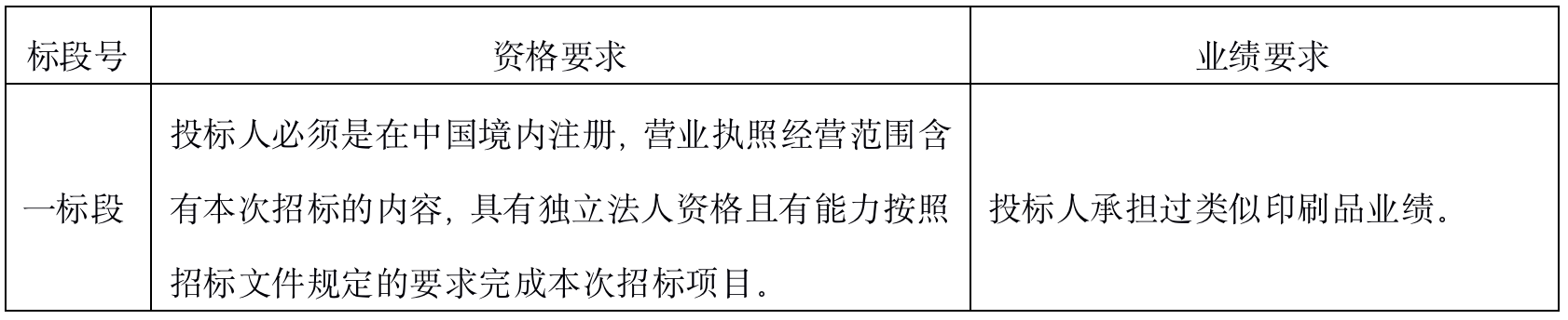 5、投標人資格及業(yè)績要求見下表: