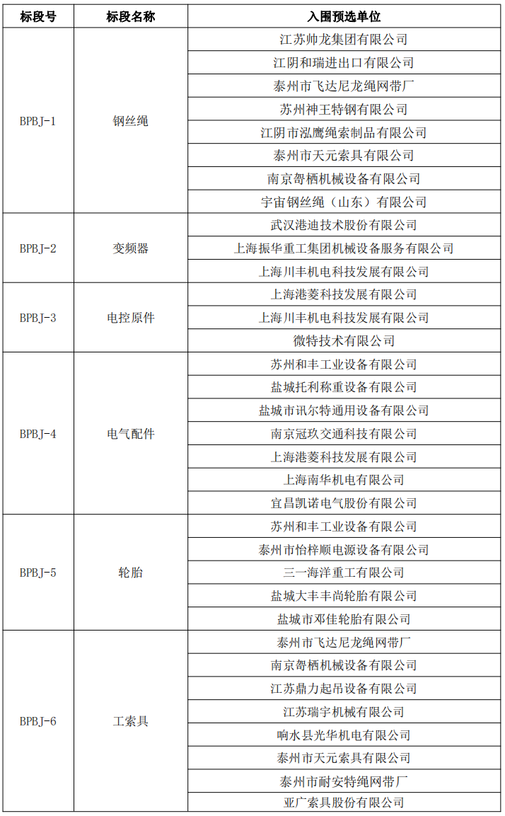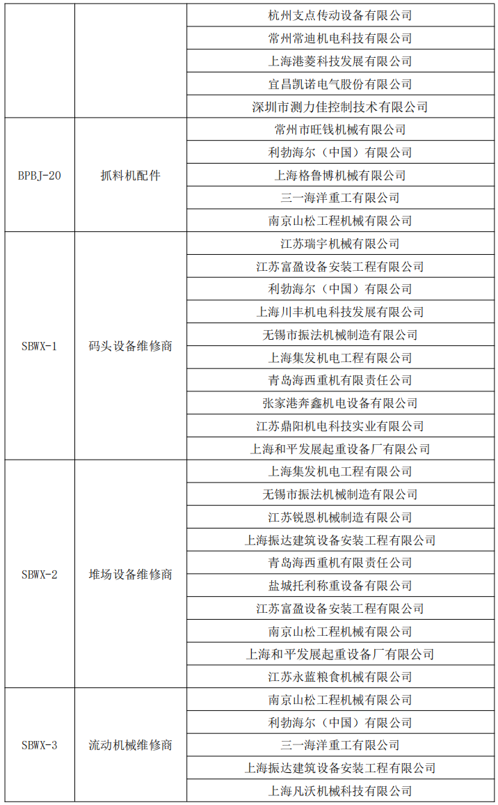 根據(jù)招標(biāo)投標(biāo)的有關(guān)法律、法規(guī)、規(guī)章和本項(xiàng)目招標(biāo)文件的規(guī)定,2023年港口設(shè)備維修材料備品備件合格供應(yīng)商預(yù)選名錄、2023年港口設(shè)備維修服務(wù)供應(yīng)商預(yù)選名錄開(kāi)標(biāo)和評(píng)標(biāo)工作已經(jīng)結(jié)束,入圍的預(yù)選單位已經(jīng)確定?,F(xiàn)將入圍的預(yù)選單位名單公示如下: