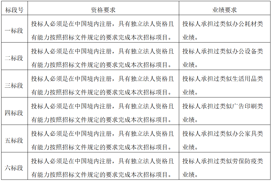 4、各標(biāo)段投標(biāo)人資格及業(yè)績(jī)要求見下表: