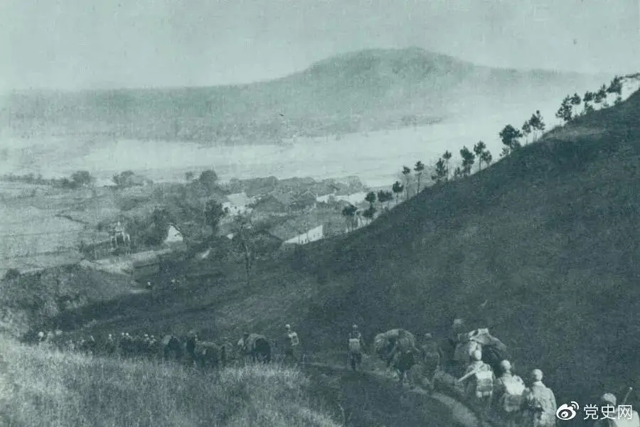 1945年4月6日,太行部隊等向白晉、同蒲沿線上的日軍展開攻擊。這是八路軍向祁縣開進。