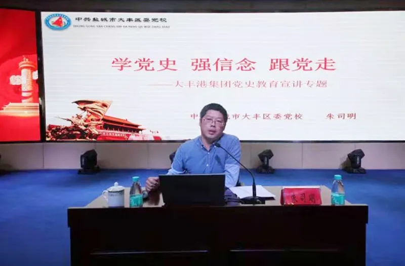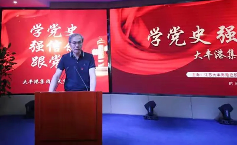 6月5日上午,大豐港區(qū)開展“學黨史、強信念、跟黨走”黨史宣講活動。大豐港區(qū)黨委副書記、董事、總經(jīng)理繆存美,大豐港區(qū)領(lǐng)導班子全體、港區(qū)機關(guān)全體和各子公司中層副職以上干部參加活動。