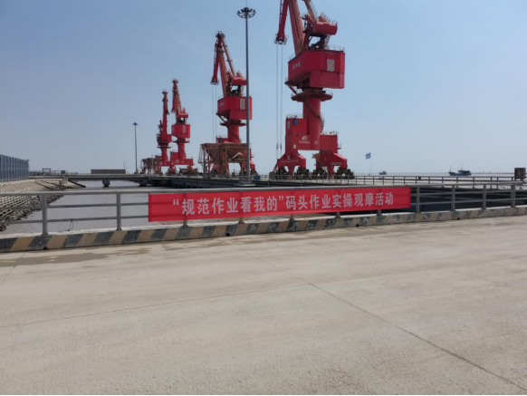 為加強(qiáng)碼頭作業(yè)現(xiàn)場(chǎng)的安全生產(chǎn)規(guī)范化管理,進(jìn)一步提升安全生產(chǎn)作業(yè)以及標(biāo)準(zhǔn)化隊(duì)伍建設(shè)水平,4月14日上午,射陽(yáng)港區(qū)在碼頭現(xiàn)場(chǎng)開(kāi)展“規(guī)范作業(yè)看我的”觀摩活動(dòng),市國(guó)資委副主任馬如超出席,鹽城港集團(tuán)安全環(huán)保部、生產(chǎn)經(jīng)營(yíng)技術(shù)部相關(guān)負(fù)責(zé)同志參加。