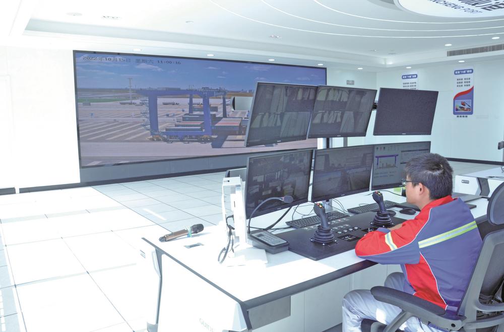 新技術(shù)帶來(lái)新變革,自動(dòng)化碼頭便捷的操作、舒適的環(huán)境,改變了單人單機(jī)操作重型起重設(shè)備的歷史。在整個(gè)項(xiàng)目的“大腦”——中控室里,操作系統(tǒng)發(fā)出指令,新能源電動(dòng)集裝箱卡車(chē)前往堆場(chǎng),兩名軌道吊司機(jī)遠(yuǎn)程監(jiān)控著4臺(tái)自動(dòng)化軌道吊,精準(zhǔn)定位,瞬間完成抓箱、落箱,集裝箱“一鍵著箱”精準(zhǔn)無(wú)誤。偌大的堆場(chǎng),除了集裝箱卡車(chē)司機(jī),看不到其他工作人員。