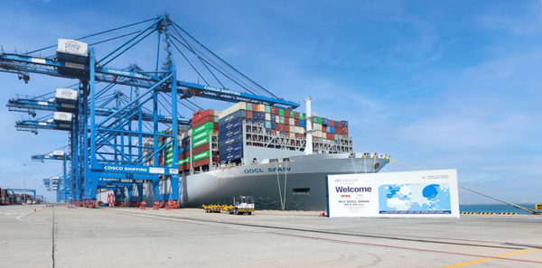 中遠(yuǎn)海運(yùn)(西亞)有限公司董事長田東表示,“東方西班牙”輪執(zhí)行的西北歐航線,沿途所掛港口有德國漢堡港、荷蘭鹿特丹港、比利時(shí)澤布呂赫港、西班牙巴倫西亞港、希臘比雷埃夫斯港、阿聯(lián)酋哈利法港等,這些港口都是中遠(yuǎn)集團(tuán)港口公司合資和獨(dú)資的碼頭。西北歐航線宛如一條金色絲帶將它們串連起來,為共建“一帶一路”提供物流保障。