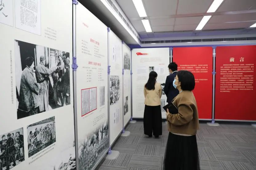 11月15日,《只要跟黨走一定能勝利——慶祝中國(guó)共產(chǎn)黨成立100周年新四軍革命文物專題展》活動(dòng)在集團(tuán)開幕。集團(tuán)黨委委員、紀(jì)委書記周旭東,新四軍紀(jì)念館副館長(zhǎng)周志明,集團(tuán)黨委委員、董事、副總經(jīng)理丁安廣等參加。