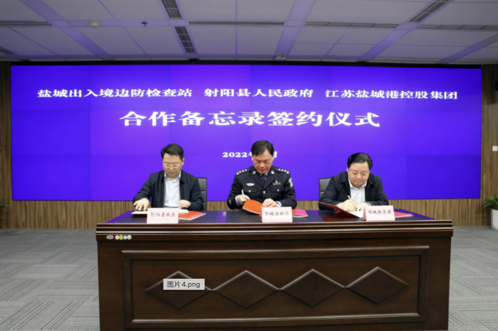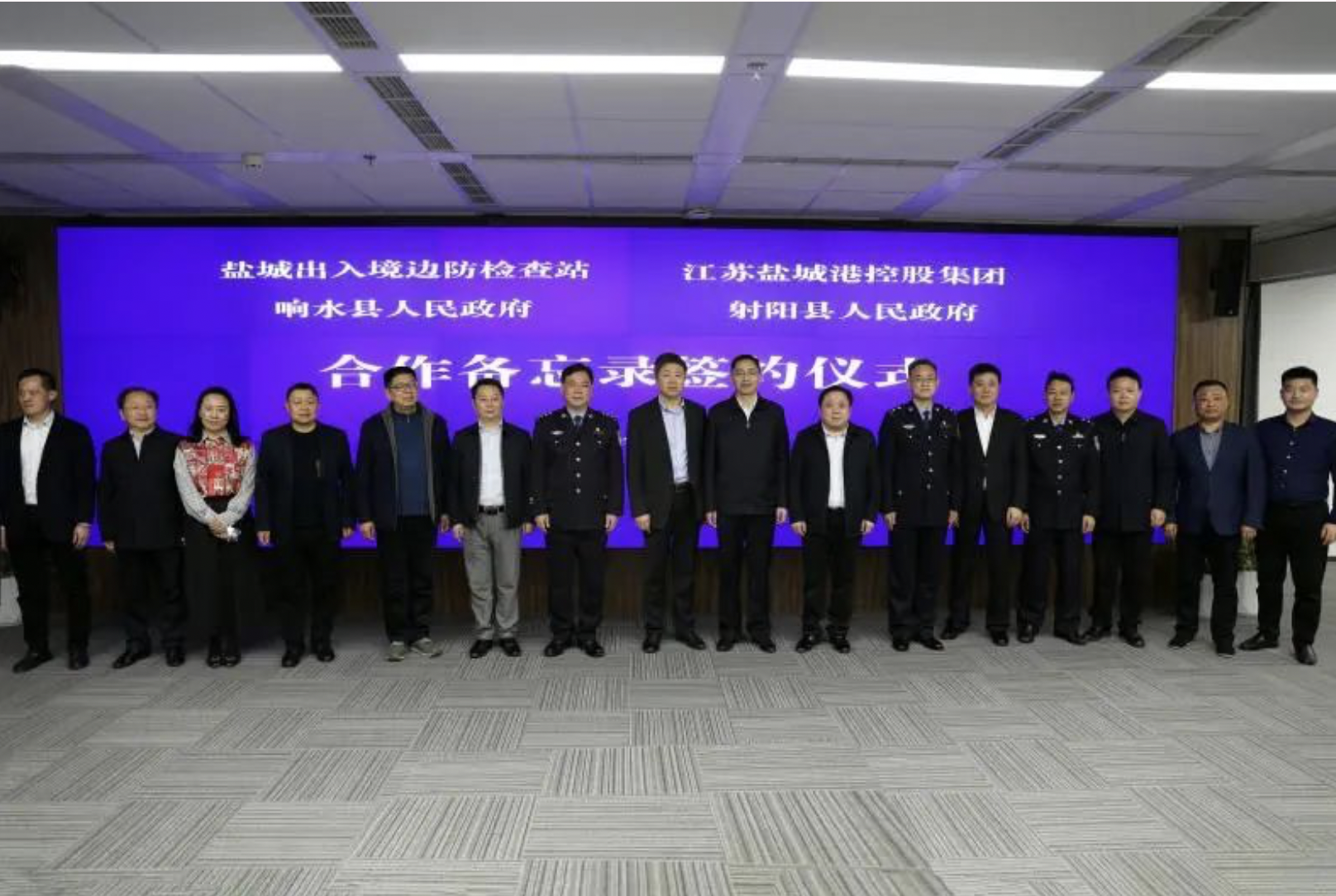 3月4日,鹽城出入境邊防檢查站、響水縣人民政府、射陽縣人民政府、鹽城港控股集團(tuán)合作備忘錄簽約儀式在我集團(tuán)舉行。市商務(wù)局局長、黨委書記、市口岸辦主任郭慶生,鹽城出入境邊防檢查站站長李興華,集團(tuán)黨委書記、董事長、總經(jīng)理周正雄,響水縣委副書記、縣長陸文忠,射陽縣委常委、常務(wù)副縣長凌曉東,響水縣副縣長田大波,射陽縣副縣長陳劍峰,鹽城出入境邊防檢查站政治委員王海燕,市口岸辦副主任、市商務(wù)局黨委委員陳國亮,市口岸辦副主任、市商務(wù)局黨委委員、二級(jí)調(diào)研員韓玉軍,集團(tuán)黨委委員、紀(jì)委書記周旭東,總經(jīng)理助理孫永峰等參加。