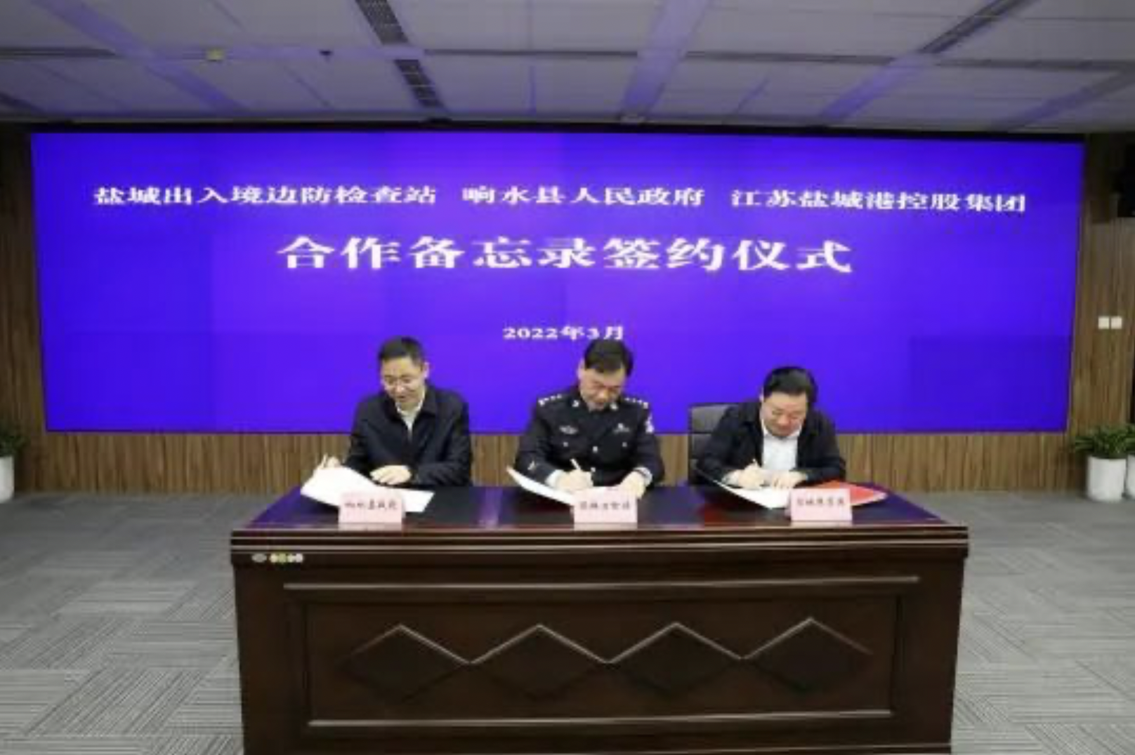 根據(jù)備忘錄要求,鹽城出入境邊防檢查站將按照國家對(duì)外開放口岸建設(shè)標(biāo)準(zhǔn),指導(dǎo)口岸邊檢查驗(yàn)配套設(shè)施建設(shè),共同做好響水港區(qū)、射陽港區(qū)迎接國家級(jí)對(duì)外開放驗(yàn)收各項(xiàng)工作,深化邊檢“放管服”改革,優(yōu)化口岸營商環(huán)境,提升服務(wù)效能和通關(guān)效率,為打造特色港口貢獻(xiàn)邊檢智慧和力量。同時(shí),積極發(fā)揮邊檢大數(shù)據(jù)在口岸安全、疫情防控、服務(wù)發(fā)展等方面的重要作用,為政府和企業(yè)及時(shí)提供口岸出入境數(shù)據(jù)分析,更好地服務(wù)地方外向型經(jīng)濟(jì)發(fā)展。