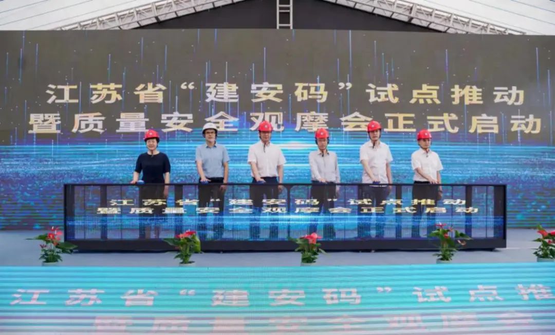 6月12日上午,江蘇省“建安碼”試點(diǎn)推動(dòng)暨質(zhì)量安全觀摩會(huì)在鹽城國際航運(yùn)中心項(xiàng)目現(xiàn)場(chǎng)舉行。省住建廳二級(jí)巡視員唐世海、質(zhì)安處副處長(zhǎng)夏亮,市住房和城鄉(xiāng)建設(shè)局總工程師嚴(yán)東鳴,集團(tuán)黨委委員、副總經(jīng)理徐振山等出席活動(dòng)。