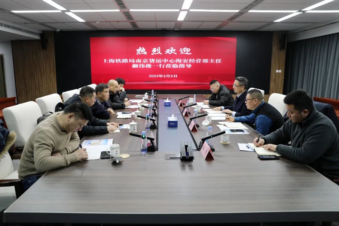 2月5日,上海鐵路局南京貨運(yùn)中心海安經(jīng)營部主任蒯偉俊率隊(duì)拜訪集團(tuán),就建湖縣快捷鐵路貨場資質(zhì)辦理、后期運(yùn)營管理等事宜進(jìn)行交流洽談,集團(tuán)黨委副書記、董事、總經(jīng)理陸帥接待蒯偉俊一行。集團(tuán)黨委委員、副總經(jīng)理梁洪兵,南京物流中心營銷部副科長姜建等參加。