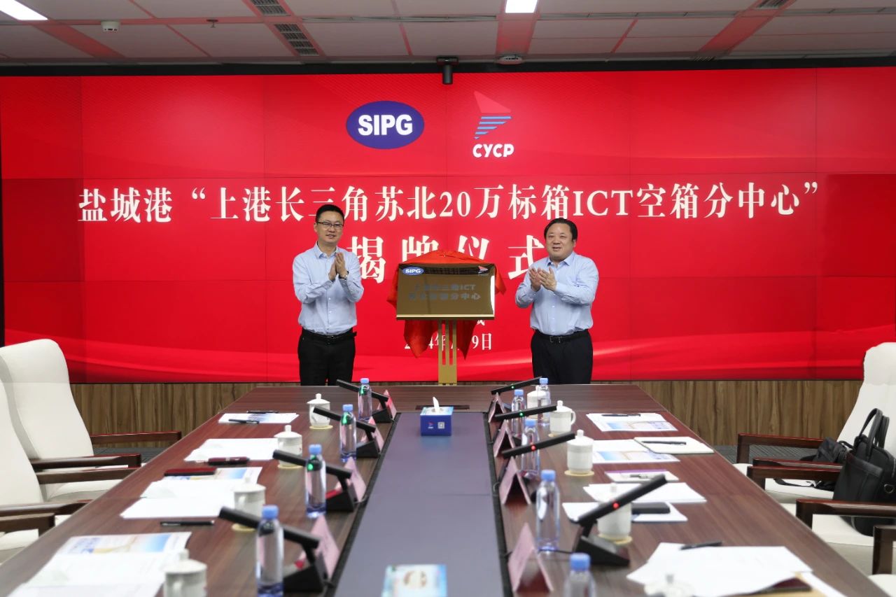 7月9日,鹽城港“上港長三角ICT蘇北空箱分中心”揭牌儀式成功舉行。集團(tuán)黨委書記、董事長周正雄,上港集團(tuán)長三角公司總經(jīng)理陳偉出席活動(dòng)并為中心揭牌。集團(tuán)副總經(jīng)理袁欣,上港集團(tuán)長三角公司、航運(yùn)集團(tuán)相關(guān)負(fù)責(zé)同志及貨主企業(yè)代表等參加。