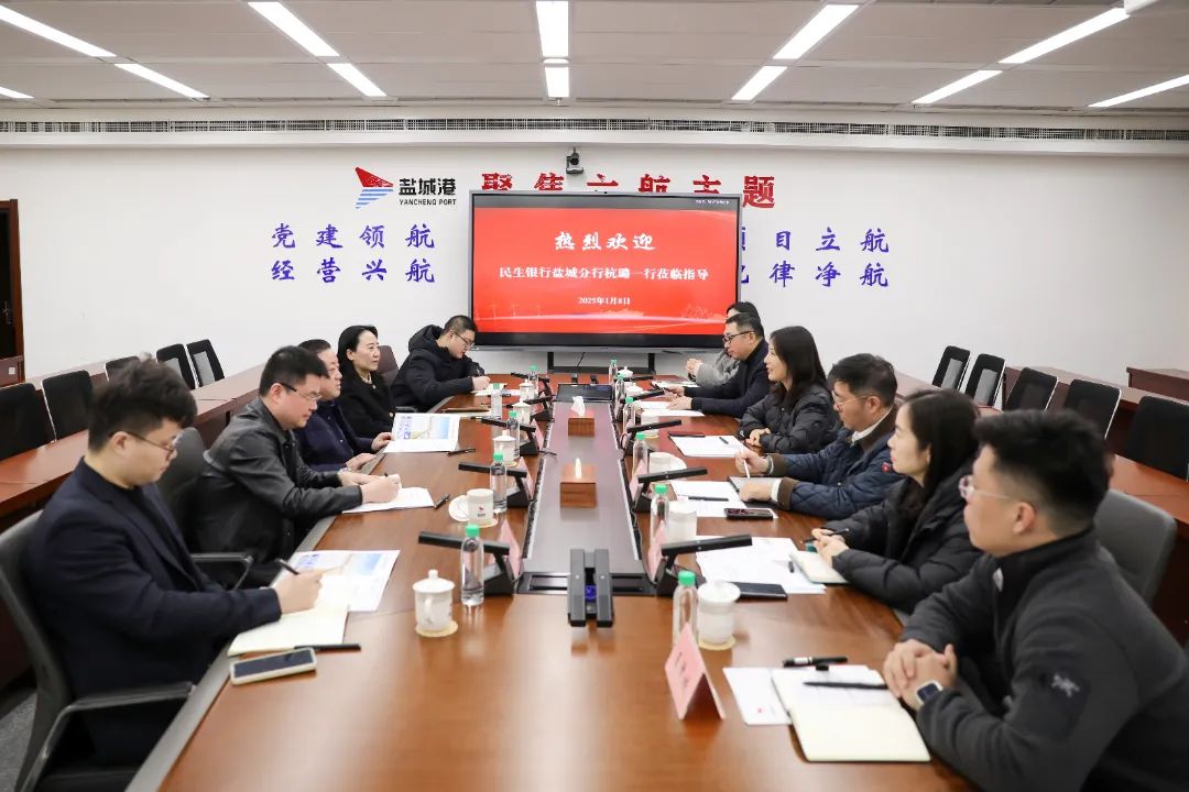 周正雄對(duì)杭璐一行的到來表示歡迎,對(duì)民生銀行鹽城分行在鹽城港發(fā)展過程中給予的關(guān)心和支持表示感謝,并介紹集團(tuán)相關(guān)情況。他說,集團(tuán)自成立以來始終堅(jiān)持發(fā)展才是硬道理,打鐵還需自身硬。堅(jiān)持業(yè)務(wù)做強(qiáng)。2021年首次躋身全國(guó)億噸大港行列,2022年貨物吞吐量增幅位列全國(guó)沿海主要港口第1位,2023年進(jìn)入全國(guó)沿海港口前20位,并持續(xù)在全國(guó)沿海港口中保持爭(zhēng)先進(jìn)位。堅(jiān)持資產(chǎn)做實(shí)。按照“優(yōu)進(jìn)劣出”的整合原則,加快非主業(yè)、閑置資產(chǎn)資源的合并處置力度,全面梳理優(yōu)化存量資產(chǎn),以非經(jīng)營(yíng)資產(chǎn)支撐經(jīng)營(yíng)資產(chǎn),不斷提高經(jīng)營(yíng)效益,實(shí)現(xiàn)資信評(píng)級(jí)提升。堅(jiān)持影響做大。持續(xù)開展市場(chǎng)開拓活動(dòng),大力實(shí)施“淮河戰(zhàn)略”,多渠道培植鹽城港未來喂給港,攜手沿淮兄弟單位共同打造“黃金水道”,共享“淮河出海門戶港”。堅(jiān)持管理做優(yōu)。直面成立初期“點(diǎn)多面廣線長(zhǎng),難煩雜亂差”的實(shí)際情況,系統(tǒng)謀劃了“整合、磨合、融合”三步走的發(fā)展路徑,加快體制機(jī)制改革,不斷提升管理水平和治理能力,推動(dòng)實(shí)現(xiàn)一體化融合高質(zhì)量發(fā)展。堅(jiān)持風(fēng)氣做正。始終堅(jiān)持“六航引領(lǐng)·融合賦能”持續(xù)整治“碼頭文化”“競(jìng)爭(zhēng)內(nèi)耗”等不正之風(fēng),揚(yáng)正氣、祛邪氣、保穩(wěn)定、優(yōu)服務(wù),營(yíng)造“一家人、在一起、手足情、過日子”的濃厚氛圍。當(dāng)前,集團(tuán)正處于加速發(fā)展的轉(zhuǎn)型期,希望民生銀行一如既往地關(guān)心和支持鹽城港的發(fā)展,在“淮河出海門戶港”建設(shè)、港口能級(jí)提升、航運(yùn)物流倉儲(chǔ)保稅供應(yīng)鏈、公鐵水海多式聯(lián)運(yùn)等方面為鹽城港提供更多金融支持,開發(fā)更多適合港口的金融產(chǎn)品,共同為鹽城海洋經(jīng)濟(jì)高質(zhì)量發(fā)展作出貢獻(xiàn)。