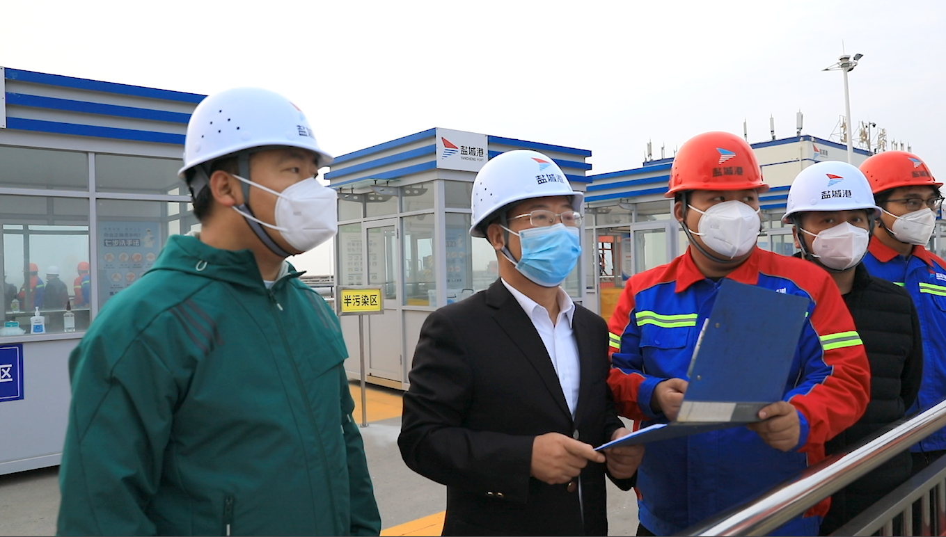 10月30日中午12時30分,來自韓國釜山港直航的潤昶號,靠泊鹽城港大豐港區(qū)集裝箱碼頭平臺。碼頭集裝箱作業(yè)橋架緩緩放下,聯(lián)檢單位工作人員陸續(xù)登船進(jìn)行裝卸前的查驗(yàn)工作。