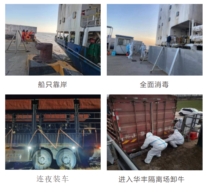船舶靠岸后,工作人員積極搶抓時間,從27日下午17時至28日下午14時,始終堅守崗位連續(xù)工作近24小時,協(xié)同第三方認(rèn)真組織開展防疫、消毒措施,在最短時間內(nèi)完成了卸牛、運輸及種牛進(jìn)場工作,為今年的種牛隔離業(yè)務(wù)畫上了圓滿的句號。