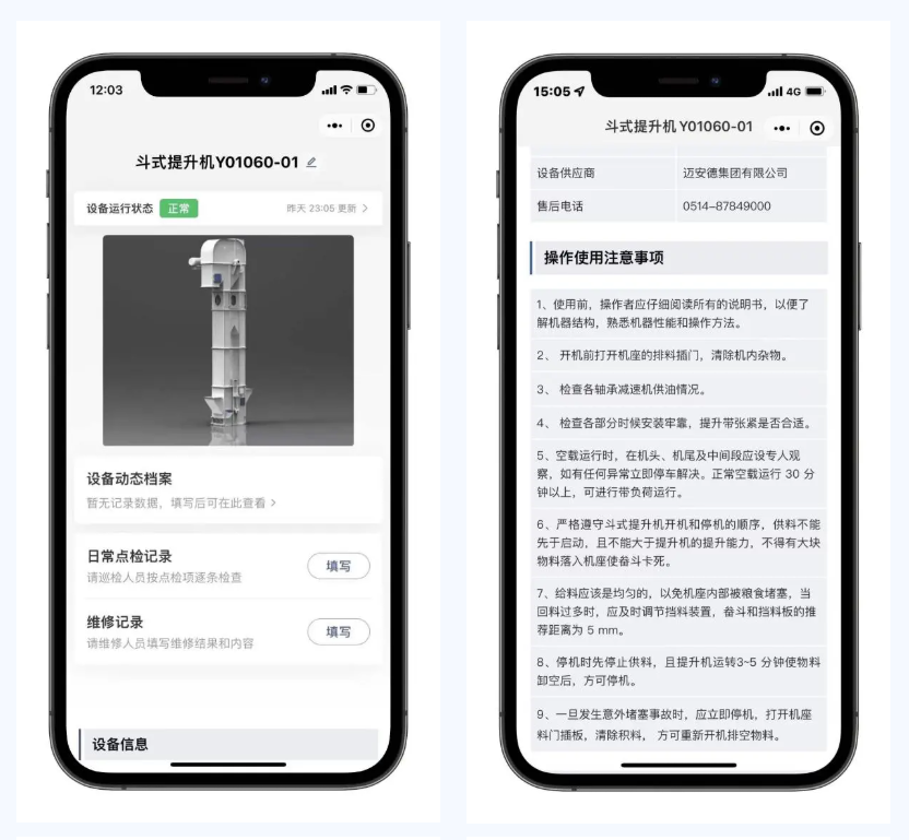 巡檢及維保人員只需通過微信掃描設(shè)備上的二維碼,即可對(duì)照小程序檢查條目逐條確認(rèn)并記錄工作內(nèi)容,快速記錄設(shè)備狀態(tài)、檢修設(shè)備,也可以根據(jù)小程序中顯示的設(shè)備常見故障以及排除方法,第一時(shí)間判斷設(shè)備問題并及時(shí)通知機(jī)務(wù)進(jìn)行修復(fù),及時(shí)消除存在隱患。