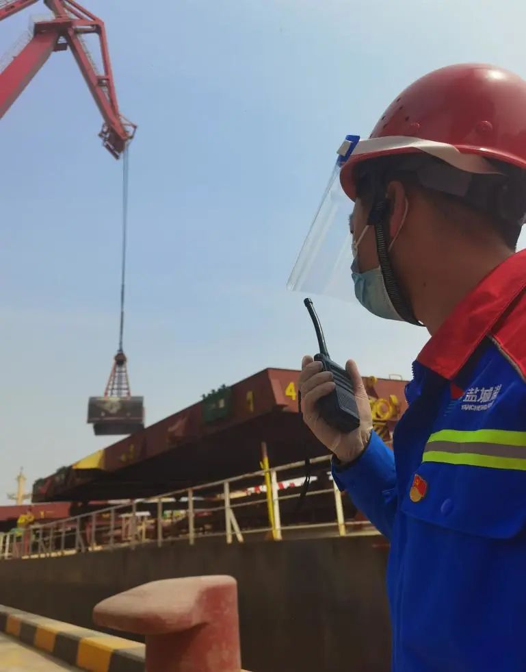 現(xiàn)場調(diào)度和門機司機的精密配合下