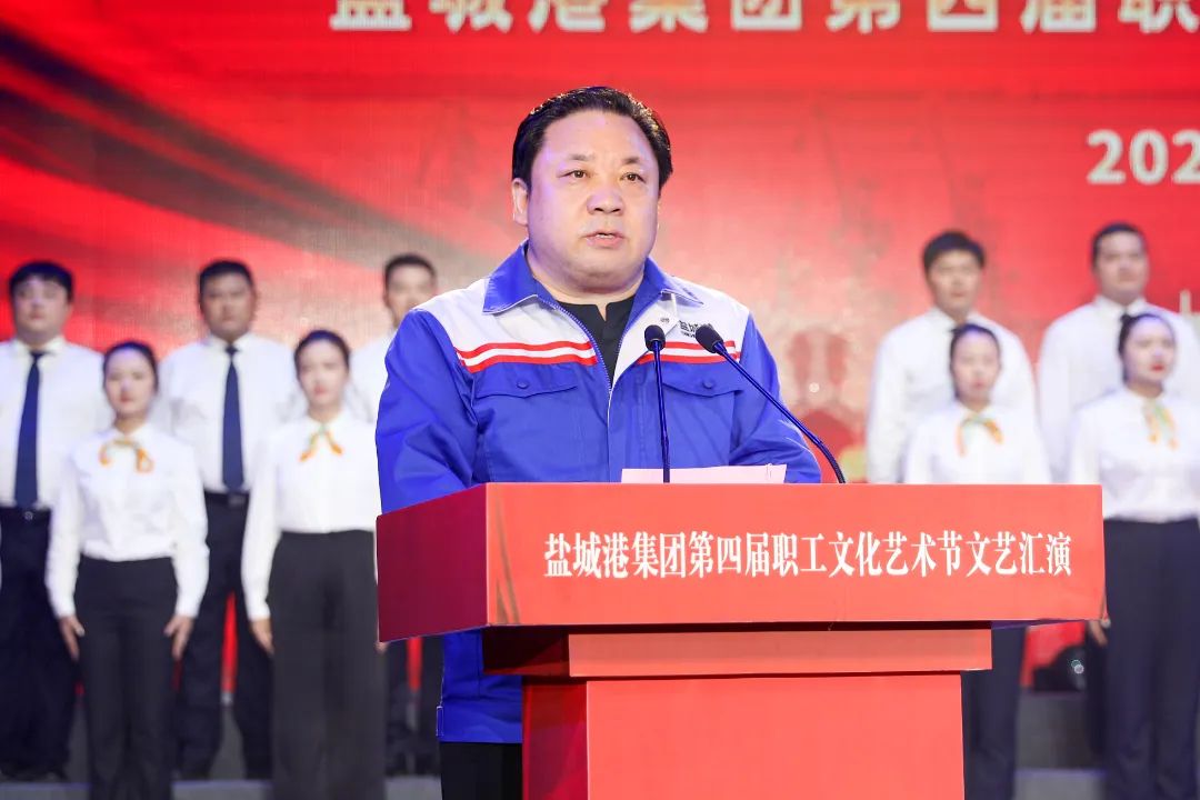 演出在鹽城港集團(tuán)宣傳片中拉開帷幕。集團(tuán)黨委書記、董事長周正雄在致辭中表示,這四年的歷程,是一部自強(qiáng)不息、艱苦卓絕的創(chuàng)業(yè)史,是一部勠力同心、催人奮進(jìn)的發(fā)展史,是一部不負(fù)韶華、逐夢蔚藍(lán)的奮斗史。今天,我們即將邁入第五個(gè)年頭,機(jī)遇與挑戰(zhàn)并存,希望與困難同在,全體鹽城港人要始終堅(jiān)持“六航引領(lǐng)·融合賦能”的核心理念,自覺弘揚(yáng)“強(qiáng)港十大文化”,相互學(xué)習(xí)、相互幫助、互相關(guān)心、相互促進(jìn),真正以“十年磨一劍”的定力和韌勁投入到一體化融合高質(zhì)量發(fā)展事業(yè)中,合力打造綠色、生態(tài)、智慧、平安、美麗的“五新示范港”,為奮力譜寫中國式現(xiàn)代化鹽城新篇章作出新的更大的貢獻(xiàn)。