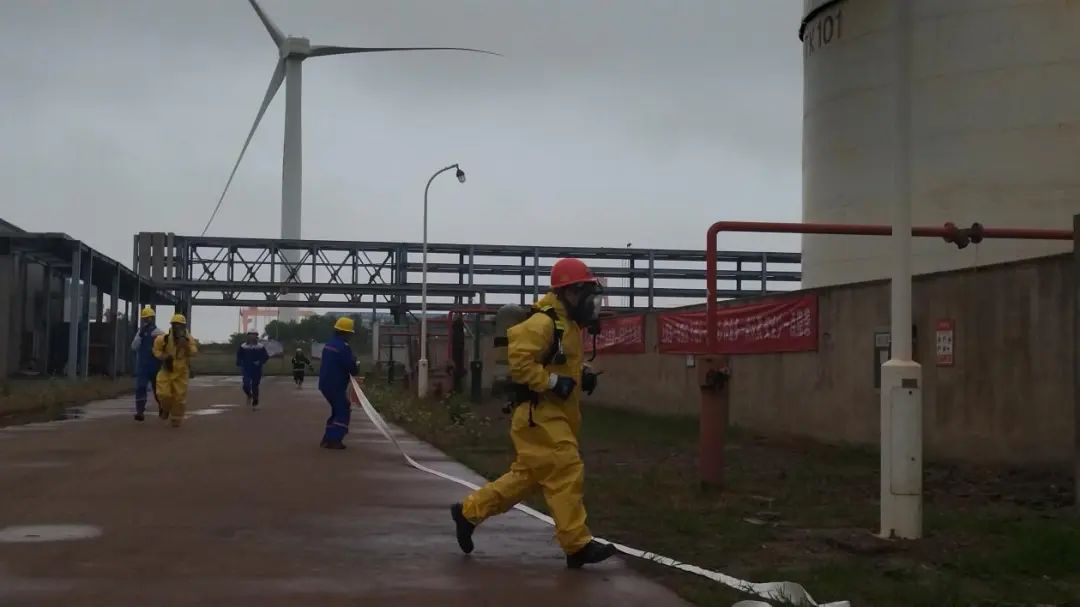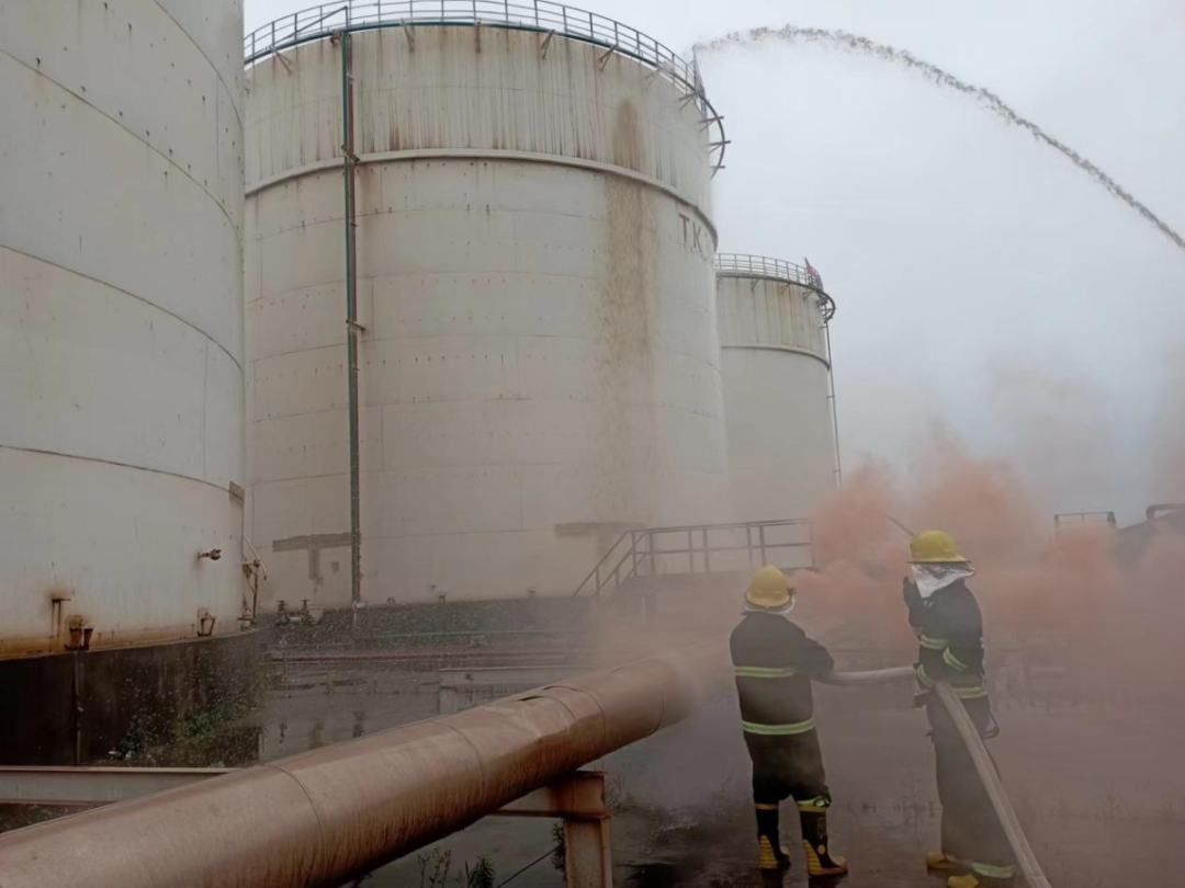在模擬罐組一泵房法蘭墊破裂發(fā)生汽油泄漏引起火災的消防演練中,各小組配合默契、反應迅速、銜接有序、措施果斷,現(xiàn)場忙而不亂,參演人員對指揮人員下達的每一個指令都能夠在第一時間給予回應并立即執(zhí)行,確保緊急情況下第一時間搶險救援。各小組結合現(xiàn)場情況分析應對初起火災的應急處置流程、周邊消防設備設施的正確使用要領、火災撲救消防安全知識等,同時確保每名職工都能牢牢掌握會報警、會撲救、會疏散的必備消防技能。真正做到掌握消防應急技能,練就過硬本領。