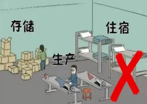 不準(zhǔn)將生產(chǎn)經(jīng)營(yíng)場(chǎng)所、倉(cāng)庫(kù)、宿舍等合并設(shè)置,形成“三合一”“多合一”情形;
