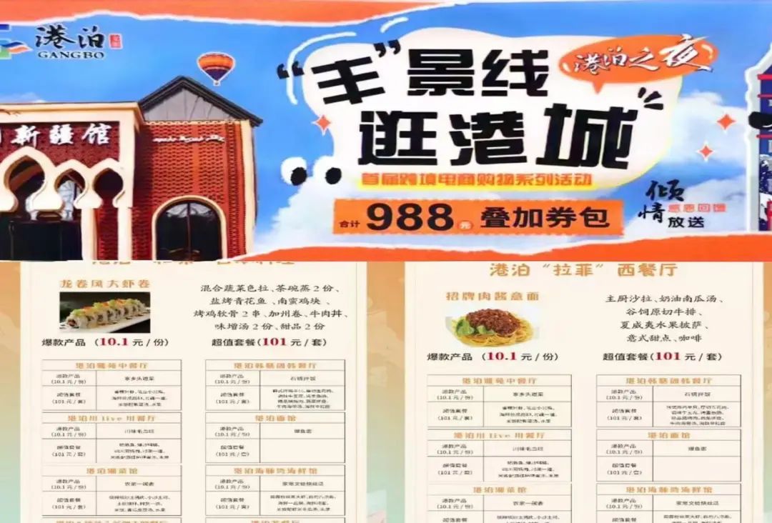 港泊酒店管理分公司旗下餐飲門店位于跨境電商園內(nèi),餐飲店鋪匯集了各地美味佳肴,有湘菜館、日料餐廳、海鮮館、新疆館、泰國(guó)餐廳、茶餐廳、西餐廳、中餐廳等。