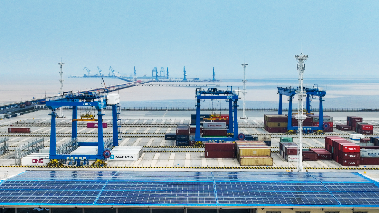▲ 鹽城港自動(dòng)化集裝箱堆場(chǎng)