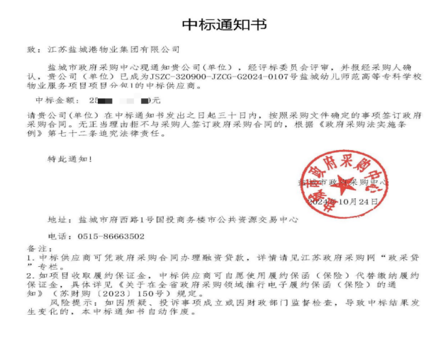 金秋十月,碩果累累,鹽城港物業(yè)公司成功中標鹽城幼兒師范高等專科學校物業(yè)服務項目,在鹽城大市區(qū)外拓市場中實現(xiàn)新突破!項目新增“宿管”“安全員”等服務內(nèi)容,總服務面積12余萬平方米,中標金額200余萬元,為在管項目領域再添新業(yè)績!