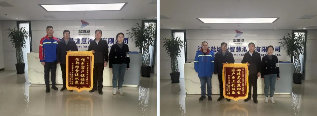 1月13日,射陽(yáng)春蕾麥芽有限公司分別對(duì)智慧港口公司和興農(nóng)公司贈(zèng)送寫有“情系客戶謀福祉 搶卸糧食保雙贏”“卸糧高效顯擔(dān)當(dāng) 客戶至上創(chuàng)效益”字樣的錦旗,為智慧港口公司在“廣航2”輪大麥中轉(zhuǎn)作業(yè)中所展現(xiàn)的高效與優(yōu)質(zhì)服務(wù)表示感謝,同時(shí)亦是對(duì)興農(nóng)公司精心構(gòu)建的集“運(yùn)輸、中轉(zhuǎn)、倉(cāng)儲(chǔ)”于一體的全流程綜合服務(wù)表示肯定。
