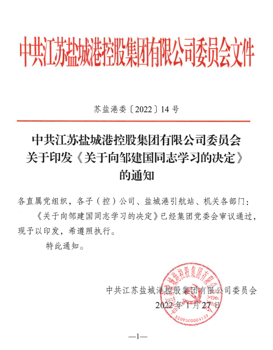 鄒建國(guó)同志與病魔抗?fàn)幎嗄辏钡缴淖詈髸r(shí)刻,仍然奮戰(zhàn)在引航抗疫第一線,充分詮釋了鹽城港人勇敢無(wú)畏的優(yōu)良品質(zhì),生動(dòng)展現(xiàn)了引航老兵忠于黨的精神風(fēng)貌,是鹽城港航事業(yè)的杰出代表,為鹽城港人樹(shù)立了奮勇向前的時(shí)代榜樣。為深入學(xué)習(xí)鄒建國(guó)同志先進(jìn)事跡,切實(shí)弘揚(yáng)時(shí)代英模精神,激勵(lì)廣大黨員干部胸懷理想、堅(jiān)定信念,恪盡職守、無(wú)私奉獻(xiàn),經(jīng)鹽城港集團(tuán)黨委研究決定,在全系統(tǒng)開(kāi)展向鄒建國(guó)同志學(xué)習(xí)的活動(dòng)。