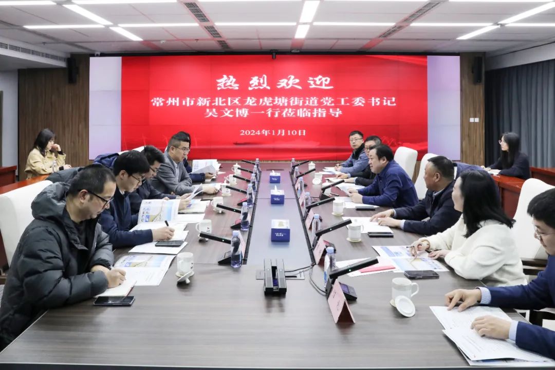 1月10日,常州市新北區(qū)龍虎塘街道黨工委書記吳文博一行拜訪我集團(tuán),為進(jìn)一步深化合作進(jìn)行交流。集團(tuán)黨委書記、董事長周正雄接待吳文博一行。集團(tuán)黨委副書記、紀(jì)委書記周旭東,常州濱江國控集團(tuán)副總經(jīng)理周峰,集團(tuán)黨委委員、副總經(jīng)理梁洪兵,集團(tuán)副總經(jīng)理袁欣等參加。