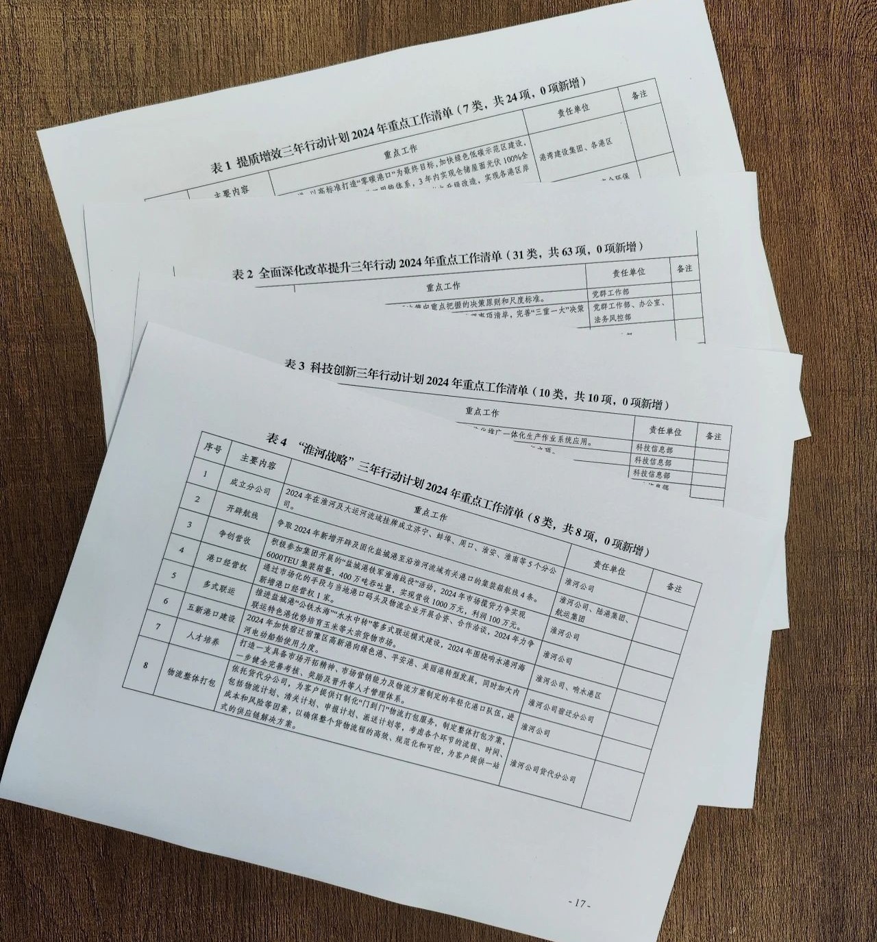 1月31日,集團發(fā)布了《成立江蘇鹽城港控股集團有限公司實施“三年行動計劃”評估工作領導小組的通知》,明確各計劃責任單位及責任人。2月1日,工作領導小組召開第一次調度會議,對各行動計劃執(zhí)行評估工作進行了系統(tǒng)部署,按照“一計劃一專班”原則,將17個三年行動計劃及各重點事項分解至17個專班,旨在充分發(fā)揮工作專班在調查研究、力量統(tǒng)籌、督促落實等方面的作用,進一步強化部門聯系、要素資源整合,推動各三年行動計劃攻堅事項一體謀劃、一體推進、一體落實。
