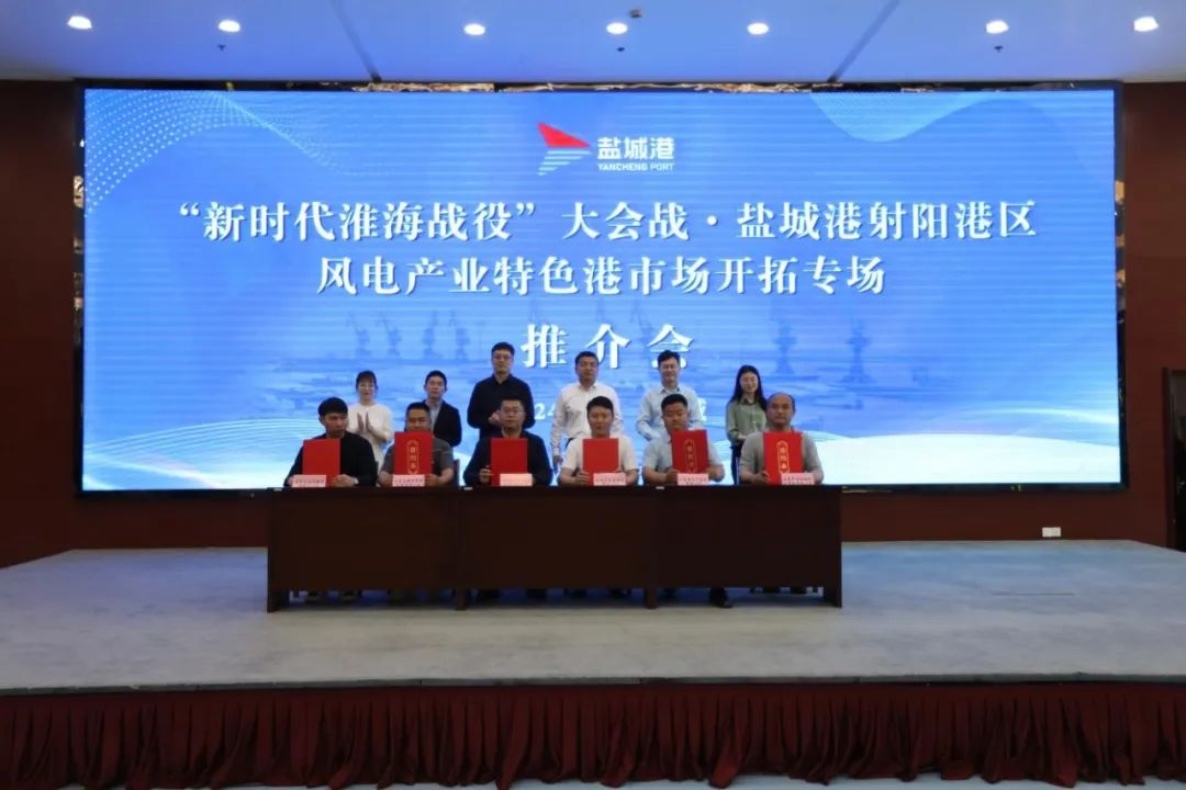 現(xiàn)場氣氛熱烈高漲。射陽港區(qū)與數(shù)十家客戶代表簽訂協(xié)議,協(xié)議年中轉(zhuǎn)風(fēng)電葉片100套,預(yù)計(jì)實(shí)現(xiàn)營收超700萬元。