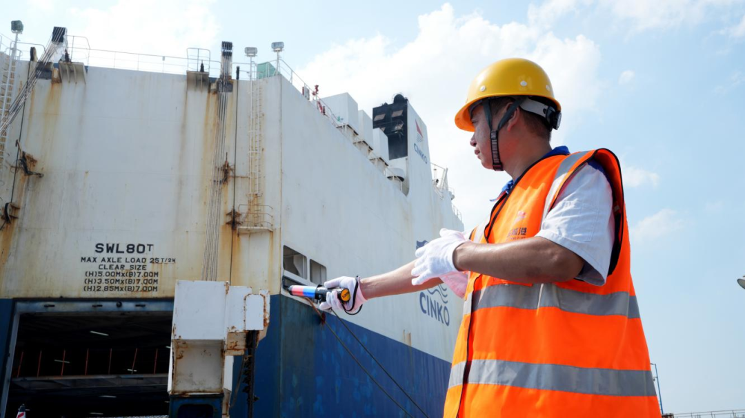7月21日,在鹽城港大豐港區(qū)滾裝碼頭,2821輛悅達(dá)起亞商品車正熱火朝天地進(jìn)行滾裝作業(yè),將開啟鹽城港自有滾裝船“和順號”首次韓國光陽港之旅。據(jù)悉,本月鹽城港大豐港區(qū)將連續(xù)出運悅達(dá)起亞汽車兩批次,共7221臺。今年以來已累計出口商品車14600臺,持續(xù)以穩(wěn)定高效的商品車物流通道助力汽車產(chǎn)業(yè)高質(zhì)量發(fā)展。