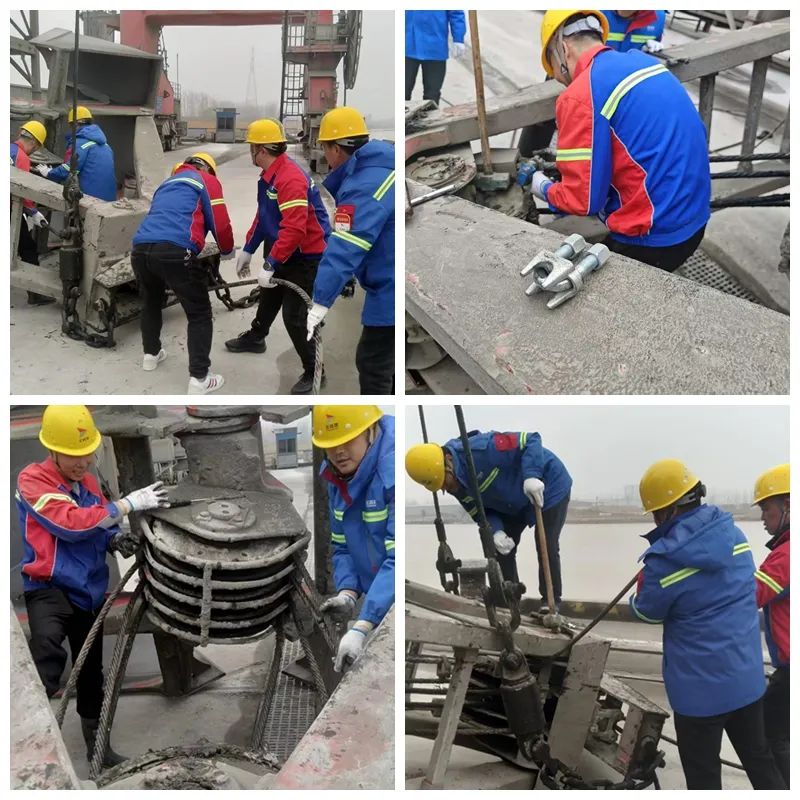 門機是港口裝卸作業(yè)的“主力軍”,而鋼絲繩作為關(guān)鍵部件,其安全性直接關(guān)聯(lián)作業(yè)效率。一季度,港區(qū)設(shè)備保障團隊利用生產(chǎn)間隙,對港區(qū)1#門機的鋼絲繩開展更換。面對時間緊、任務(wù)重的挑戰(zhàn),團隊創(chuàng)新采用“分段式拆裝+滑輪組輔助”工藝,成功將單臺設(shè)備更換時間壓縮20%,并同步完成潤滑保養(yǎng)和隱患排查工作。設(shè)備組組長邱師傅介紹:“我們提前模擬操作流程,細化每個環(huán)節(jié),抓住門機使用空檔期,確保‘換繩不停產(chǎn)’?!备鼡Q后,門機故障率下降20%,裝卸效率提升10%,為沖刺生產(chǎn)目標提供了堅實保障